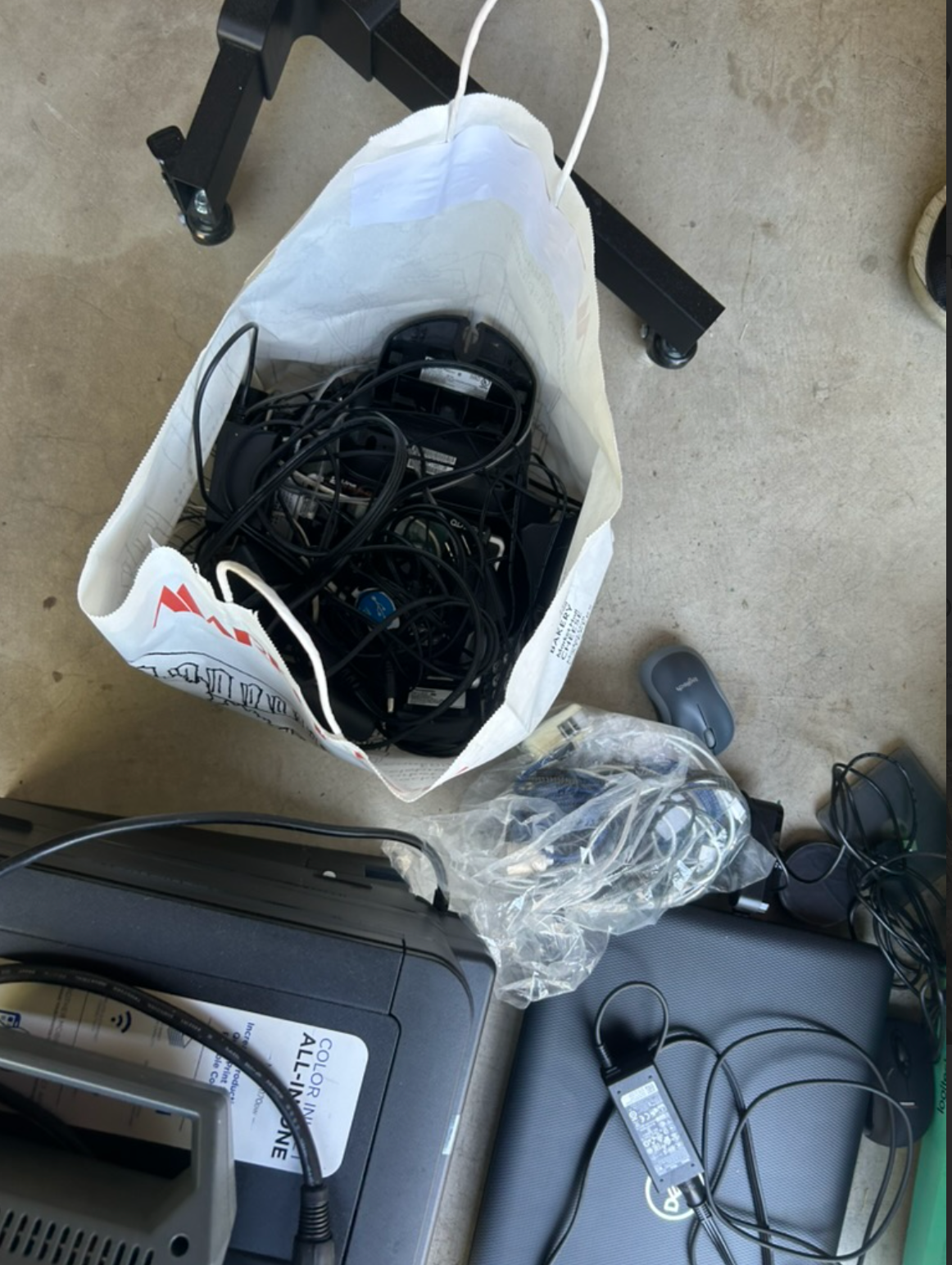 Back up important data, then restore devices to factory settings or remove hard drives before recycling. Bundle cords and chargers neatly.